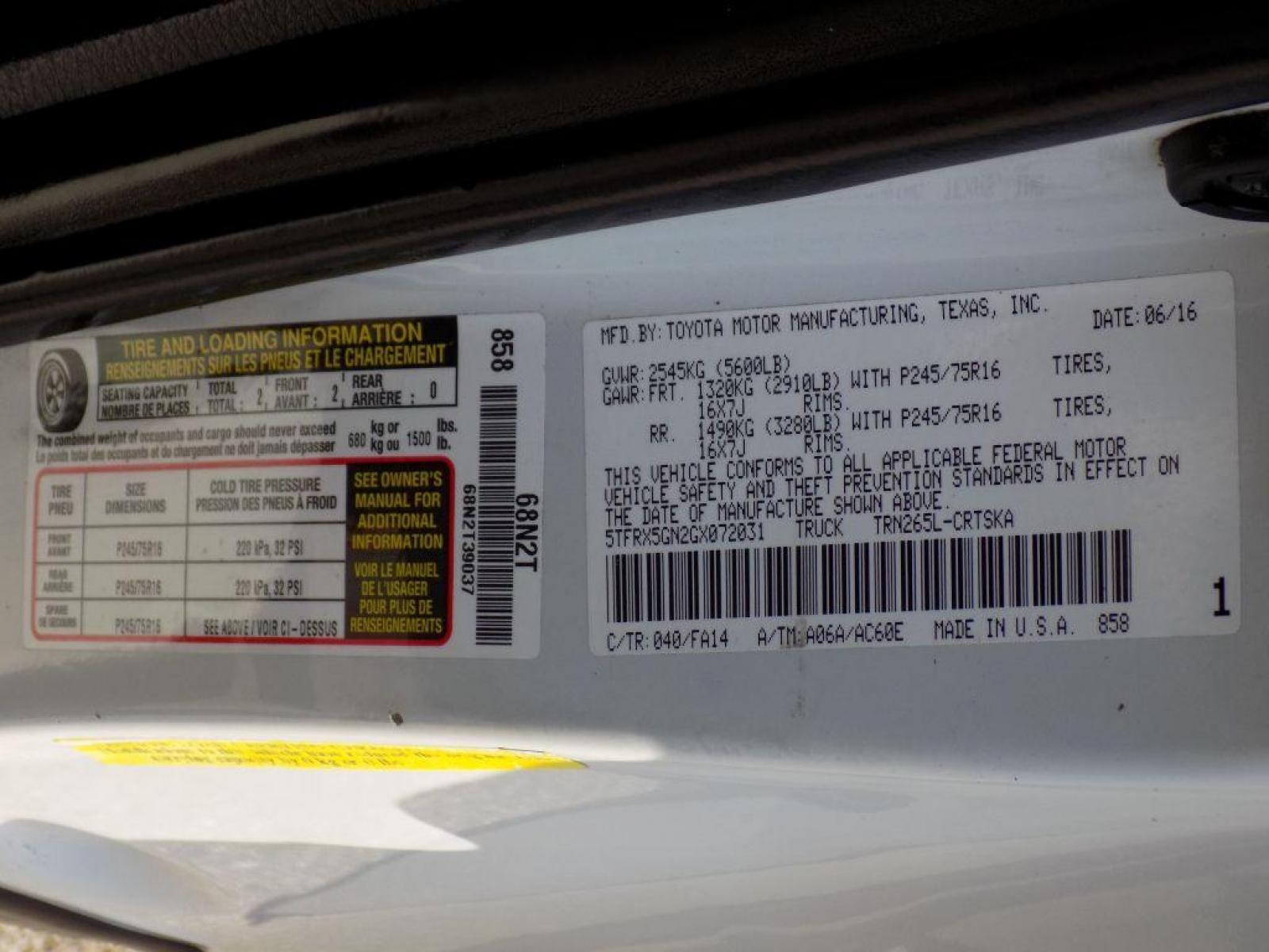 2016 TOYOTA TACOMA SR